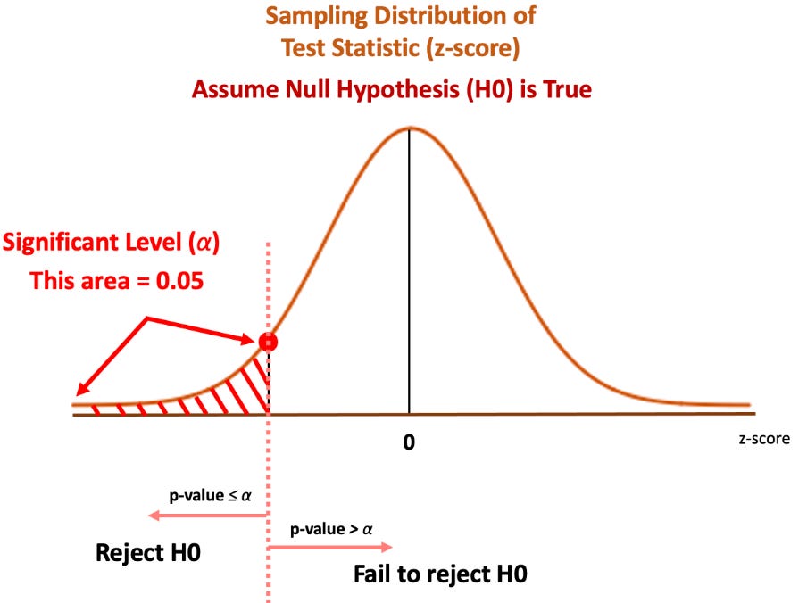if p-value < alpha → Reject Null Hyp